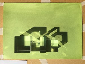 Acrylic block photograms on coloured card