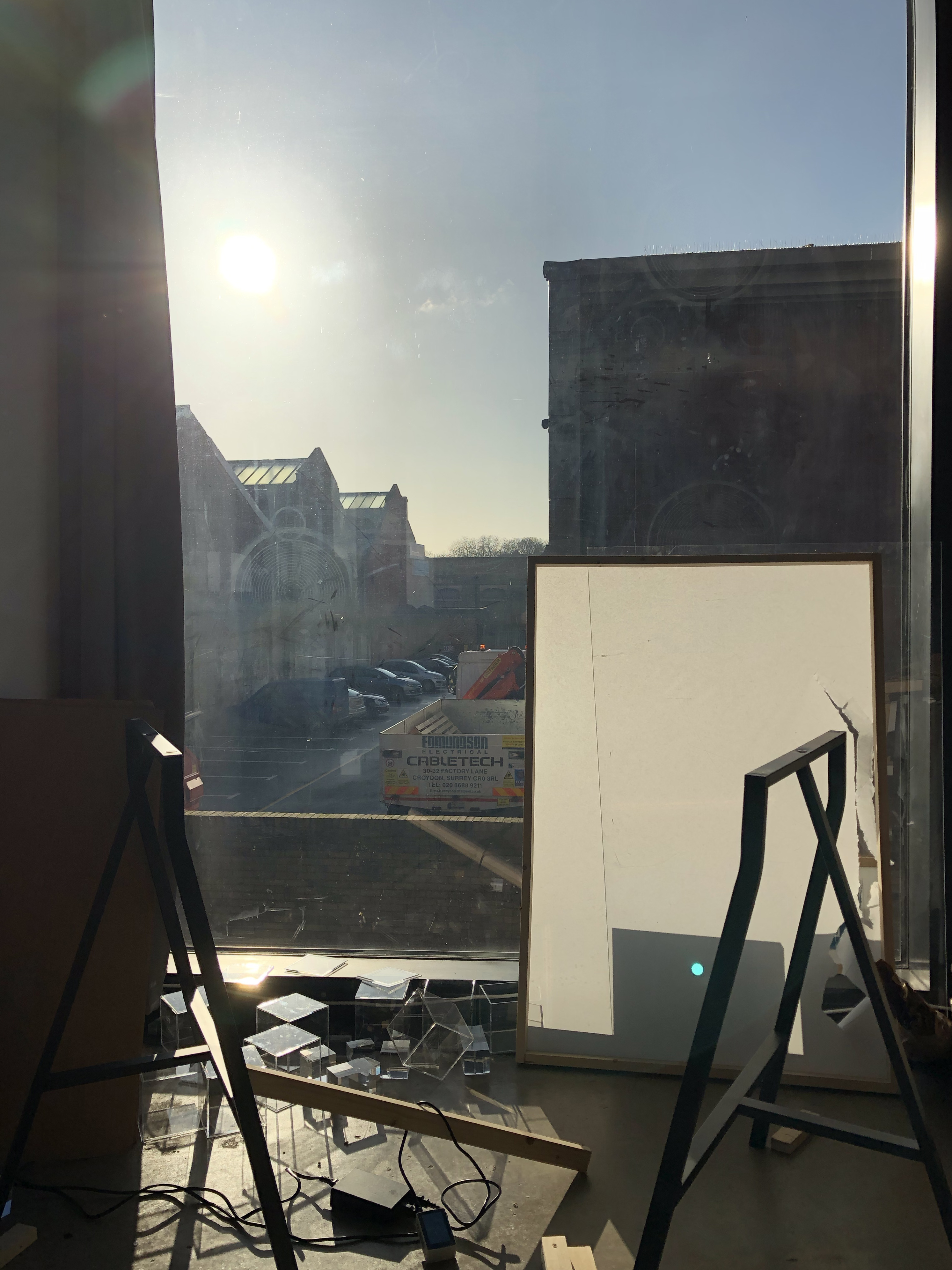 Acrylic block photograms on coloured card