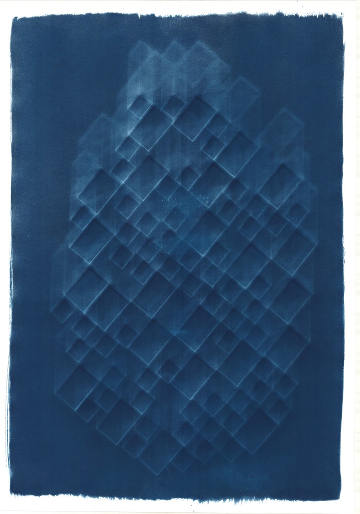 Cyanotype Photogram Prints on 570x100cm 250gsm Fabriano Unica Paper.