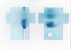 Acrylic block photograms on coloured card